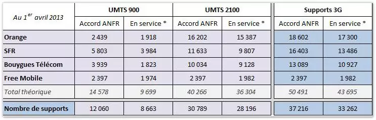 Pour la première fois, l’Agence publie également les chiffres de déploiement des réseaux 2G. 38 589 sites sont équipés pour la 2G au 1er avril 2013.