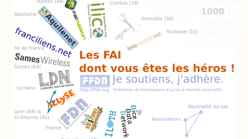 La Fédération de Fournisseur D’accès à internet associatifs, dont Tetaneutral.net fait parti, lance sa campagne d’adhésion sous la thématique "Les FAI dont vous êtes le héros" se prévalant de valeurs telles la solidarité, la neutralité du réseau, permettre aux adhérents de décider des actions de leurs intermédiaires pour accéder à internet, ou encore toutes les possibilités offertes par internet sans filtrage. Si le FAI prétend ne pas brider les débits et disposer d’une bonne couverture dans les zones blanches, aucune information n’est disponible concernant les débits accessibles aux abonnés.