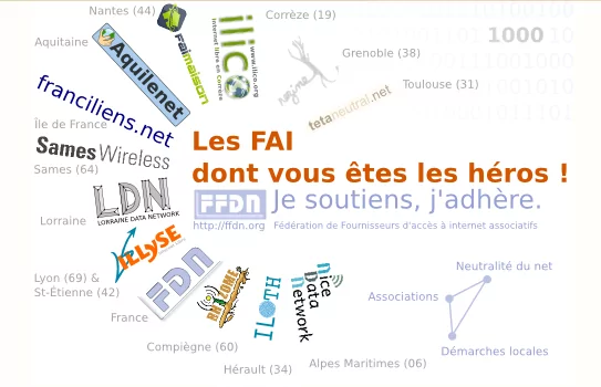 La Fédération de Fournisseur D’accès à internet associatifs, dont Tetaneutral.net fait parti, lance sa campagne d’adhésion sous la thématique "Les FAI dont vous êtes le héros" se prévalant de valeurs telles la solidarité, la neutralité du réseau, permettre aux adhérents de décider des actions de leurs intermédiaires pour accéder à internet, ou encore toutes les possibilités offertes par internet sans filtrage. Si le FAI prétend ne pas brider les débits et disposer d’une bonne couverture dans les zones blanches, aucune information n’est disponible concernant les débits accessibles aux abonnés.