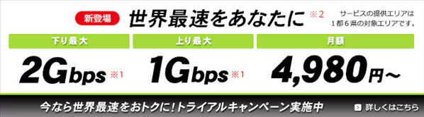 Le FAI So-Net a annoncé hier la commercialisation du forfait NURO, capable d’atteindre des débits de 2 Gbits en download et 1 Gbits en Upload soit 10 fois plus que le débit maximal proposé en France, de quoi faire baver l’ensemble des abonnés européens. Le FAI mettra également à disposition l’accès à des bornes Wi-Fi offrant des débits avoisinant les 450 Mbits.