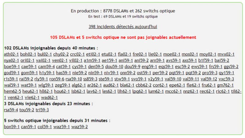 Depuis la semaine dernière, les jours passent et se ressemblent chez Free. Les problèmes d’authentification se font réguliers et, une fois de plus, certains Freenautes se retrouvent bloqués en étape 6 (Freebox Révolution). Cette fois-ci, ce sont les abonnés du Nord, du Pas-de-Calais et de l’Aisne qui sont impactés. 107 DSLAM et Switch optiques sont concernés.