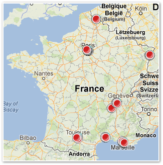 Les villes couvertes par SFR (5 zones / 7 villes) :