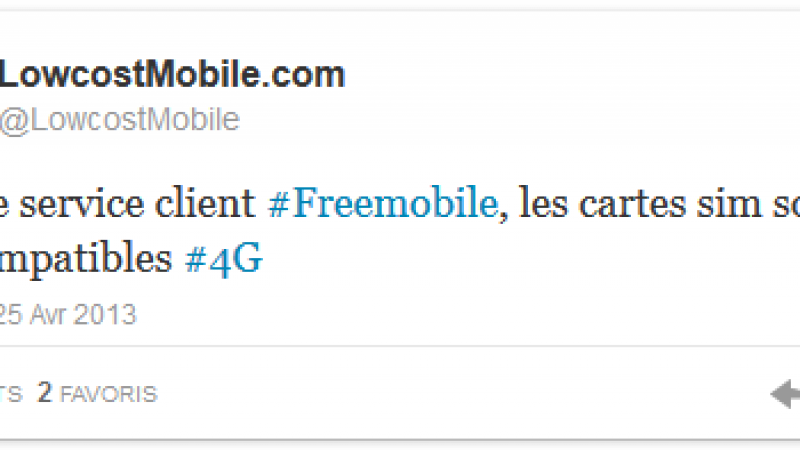 Mise à jour : Selon nos informations, les propos recueillis par Lowcostmobile auprès du service client de Free sont erronés. Pour l’instant, les cartes SIM Free Mobile ne sont pas compatibles 4G.