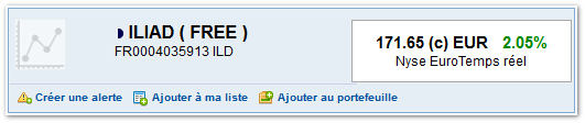 Aujourd’hui, Iliad a atteint un nouveau record historique en bourse. Le titre a grimpé de 2,05% à 171,65 euros. Au plus haut, l’action du groupe a atteint 172 euros en séance. Les performances d’Iliad pourraient ne pas en rester là. La publication, mi-mai, des résultats trimestriels (et plus particulièrement le nombre de nouveaux abonnés Free Mobile) pourraient une nouvelle fois booster l’action (lui permettant d’atteindre l’objectif fixé par certains brokers à 180€).