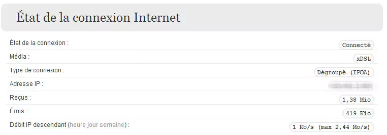 Nous vous annoncions tout à l’heure que Free avait procédé à une mise à jour du Freebox Server. Selon l’opérateur, les changements ne devaient être qu’interne. Pour autant, certains d’entre vous ont noté des évolutions sur l’interface locale de la Freebox. En effet, en se rendant sur mafreebox.freebox.fr, on peut constater que dans la rubrique « état de la connexion », quelques termes ont été modifiés. C’est le cas de « media ADSL » qui devient « media xDSL » et de "type de connexion" qui apporte désormais la précision sur le protocole utilisé, en l’occurrence IPOA.