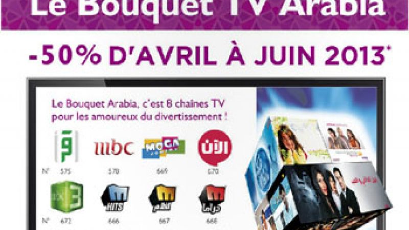 Les 8 chaînes du bouquet Arabia sont proposées à 2,99 euros par mois jusqu’au mois 30 juin, au lieu de 5,99 euros par mois (tarif applicable à partir de juillet)