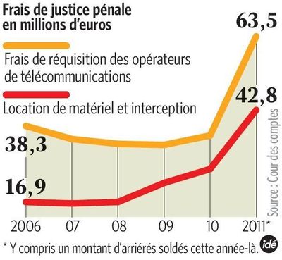 C’est près de 5 millions de réquisitions juditciaires et 40 000 écoutes téléphoniques autorisées par les juges dans le cadres de leurs enquêtes qui passeront par une seule et même plateforme.Jusque là, c’est 350 centres de gendarmerie de de police qui disposaient de ces équipements En théorie, cela simplifie de nombreuses procédures… Et réduit des coûts de procédures dont la tendance est fortement à la hausse.