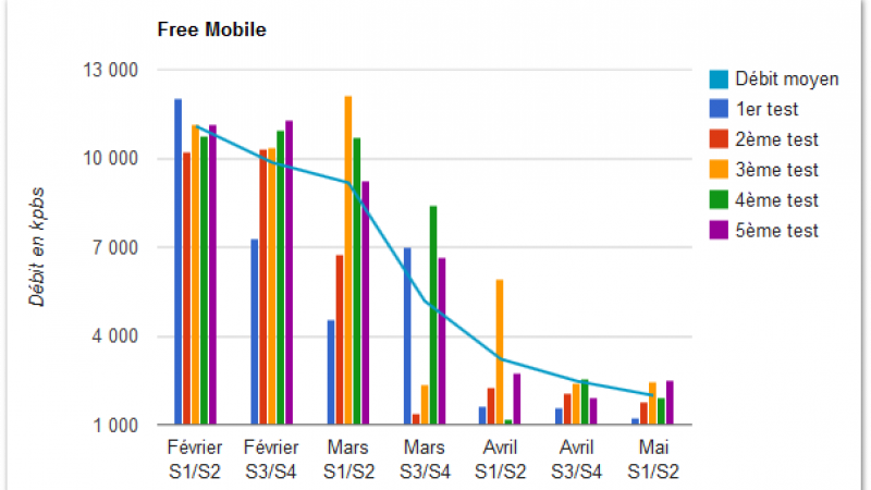 Sur les réseaux sociaux, des abonnés Free Mobile nous ont interpellé sur une baisse des débits dans plusieurs villes. Face à ce constat, certains d’entre eux ont réalisé des dizaines de mesures sur le réseau propre de Free Mobile et les ont rassemblé dans un document. Les tests ont été réalisés à Bordeaux, à Caen, à Houlgate ou encore à Sallaumines près de Lens.