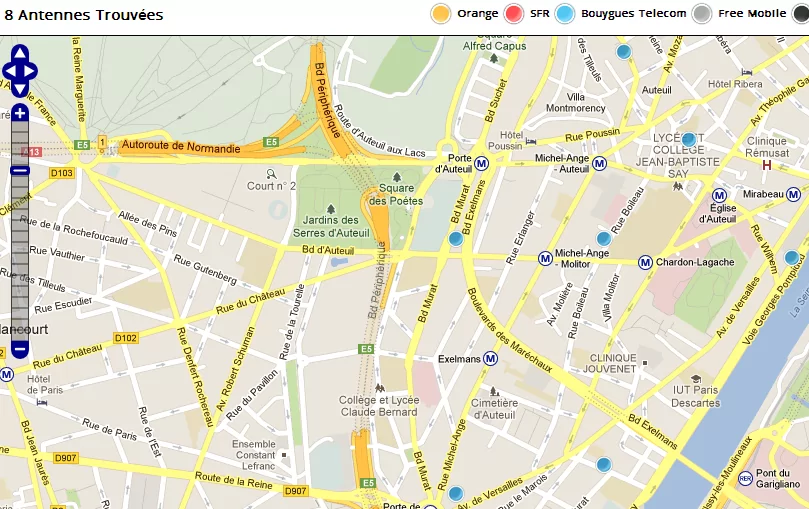 Bouygues Télécom annonce ainsi couvrir une partie du 16ème arrondissement de Paris et une partie de Boulogne Billancourt.
