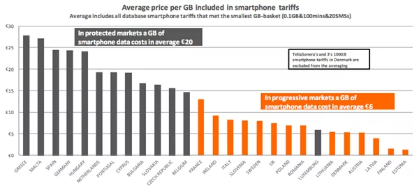 Mais si on en crois les résultats d’un bilan complet du secteur mobile en Europe, du cabinet finlandais Rewheel, si la France rentre dans la liste des pays où le marché n’est pas fermé aux tarifs plus compétitifs que la moyenne, la marche qui la sépare de la première place est encore loin.