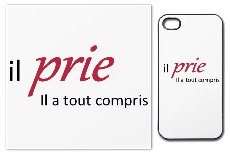 Clin d’oeil : Quel est le point commun entre Free, une coque de protection d’iPhone 4/4S et une boutique religieuse ? La réponse est … le slogan utilisé par cette dernière pour vendre ses coques. Le célèbre slogan de l’opérateur « Il a Free, il a tout compris » a été transformé en « Il prie, il a tout compris ». Vous remarquerez notamment que le verbe "prier" est similaire à la police d’écriture du logo Free (même couleur, même écriture). Après Le transport n’a pas de prix de FreeTransport, ou Free-Clop, un magasin spécialisé dans la vente de cigarettes électroniques, la religion s’y met aussi. L’identité visuelle de l’opérateur peut facilement se confondre avec celle de cette boutique religieuse.