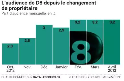La semaine dernière, avec 3.5% de part d’audience D8 se place en tête du podium des chaines de la TNT et bat son record qui jusqu’à présent culminait à 3.2%. Elle détrône donc pour la première fois TMC leader depuis trois saisons.
