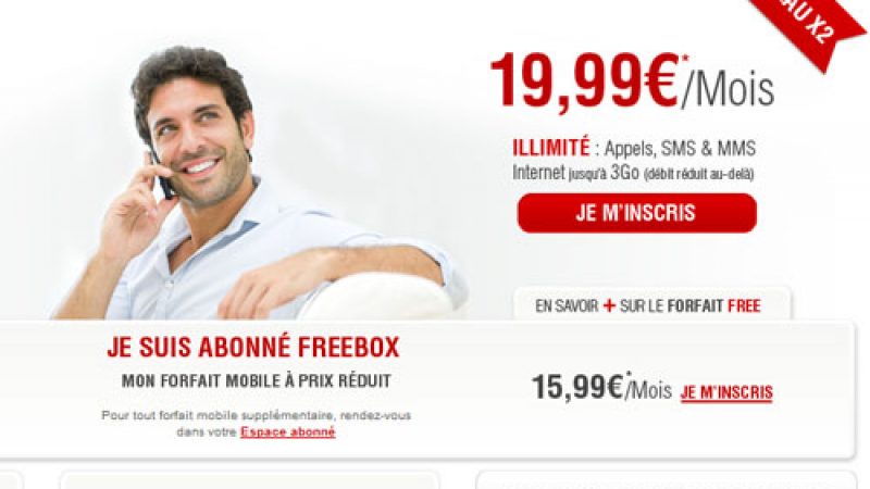 Le site de Free Mobile met en avant la double réduction sur les forfaits illimités