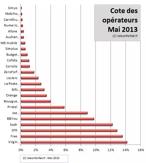 Cote des opérateurs de mai : Virgin et ses nouvelles offres détrônent Free Mobile de la 1ère place
