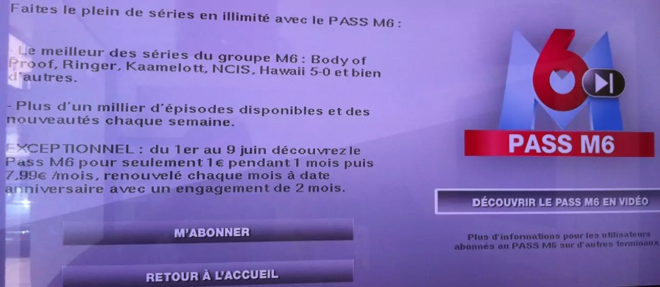 Pour vous abonner, rendez-vous sur votre Freebox, dans Vidéos/Freebox Replay/M6 et de souscrire en inscrivant votre code d’achat.