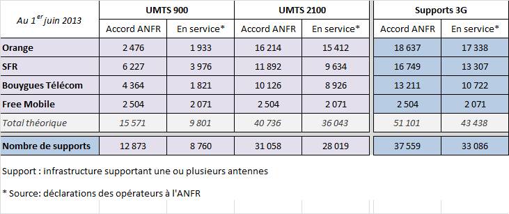 Concernant la 3G, Free franchit enfin la barre des 2500 antennes autorisées à émettre (+51) pour 2071 mises en services (+26).
