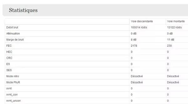 Débit brut : 100015 kbp/s en réception 18491 kbp/s en émission