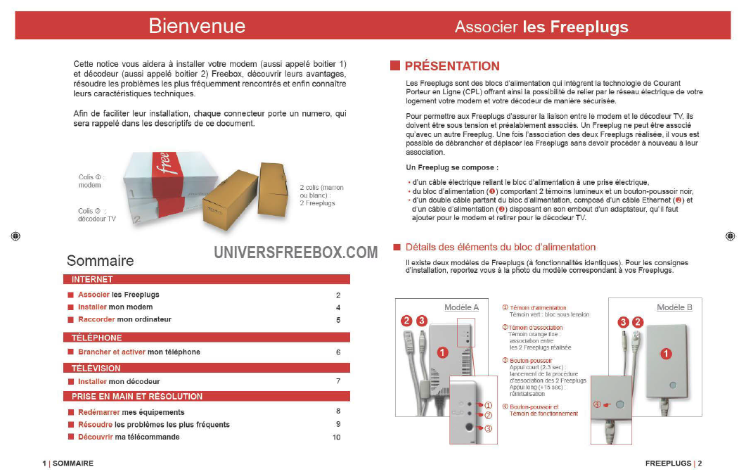 Page de bienvenue et présentation des FreePlugs (CPL) :