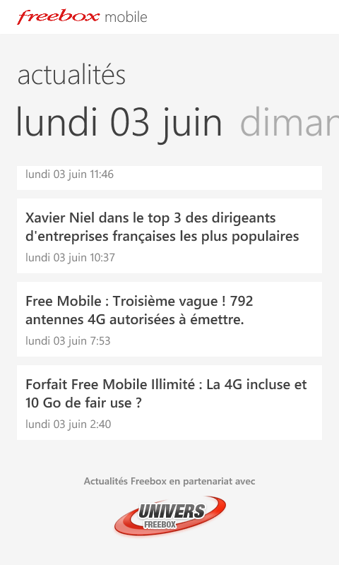 L’actualité d’Univers Freebox désormais disponible sous Windows Phone via Freebox Mobile