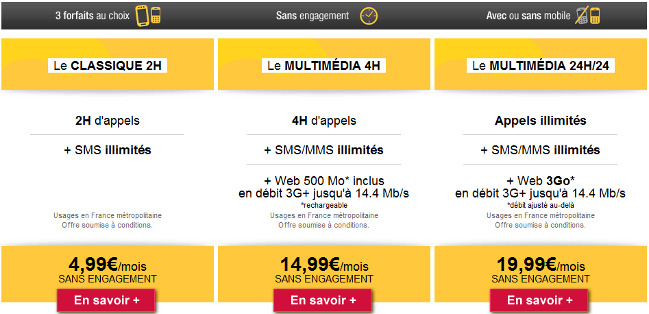 A noter que les trois forfaits ne comprennent pas de destinations à l’international, qu’il est limité à 129 correspondants différents et que les usages VOIP et P2P sont interdit.