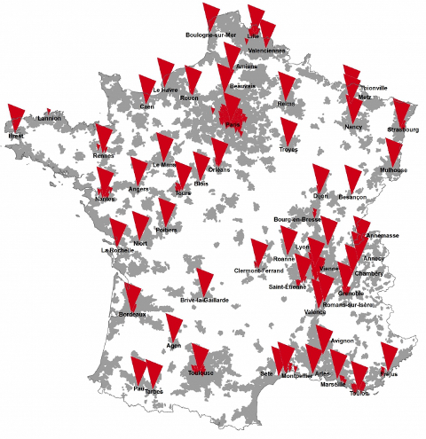 SFR poursuit donc le déploiement de son réseau de quatrième génération. L’opérateur devrait couvrir 55 agglomérations en 4G d’ici la fin de l’année 2013, dont voici la liste complète : Agen, Amiens, Angers, Annecy, Annemasse, Arles, Avignon, Beauvais, Besançon, Blois, Bordeaux, Boulogne-sur-Mer, Bourg-en-Bresse, Brest, Brives-la-Gaillarde, Caen, Chambéry, Chalon-sur-Saône, Clermont-Ferrand, Dijon, Fréjus, Grenoble, La Rochelle, Le Havre, Le Mans, Lille, Lyon, Marseille, Metz, Montpellier, Mulhouse, Nancy, Nantes, Niort, Orléans, Paris, Pau, Poitiers, Romans-sur-Isère, Rennes, Reims, Roanne, Rouen, Saint-Etienne, Sète, Strasbourg, Tarbes, Thionville, Toulon, Toulouse, Tours, Troyes, Valences, Valenciennes et Vienne.