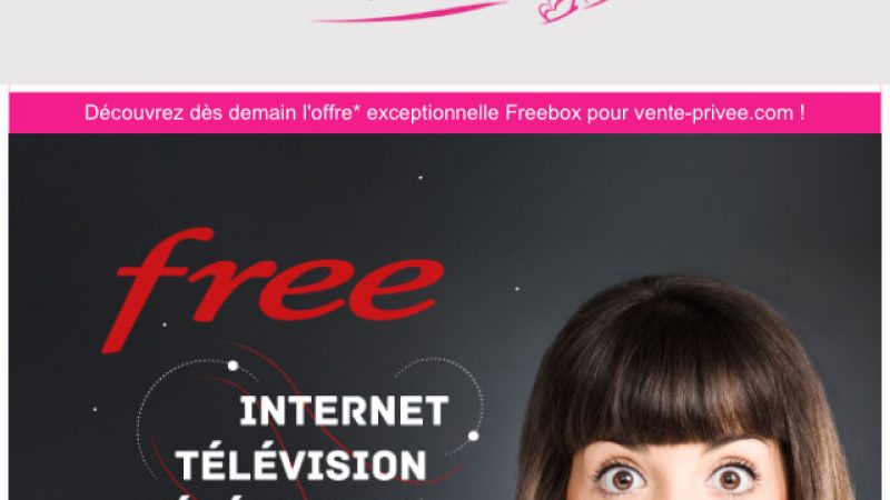 Le doute vient cependant d’être levé puisque Vente Privée a envoyé un mail en indiquant qu’il s’agira d’une offre concernant la Freebox.