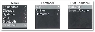 A noter, un nouveau menu dédié à la Femtocell est accessible depuis l’interface (menu tactile) de la Freebox Server. Nous vous en parlions dans cet article. Il permet de vérifier l’état d’activation de la Femto et de la démarrer ou l’arrêter.