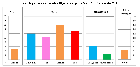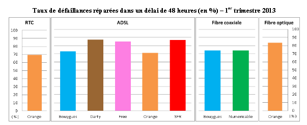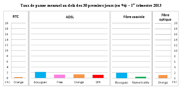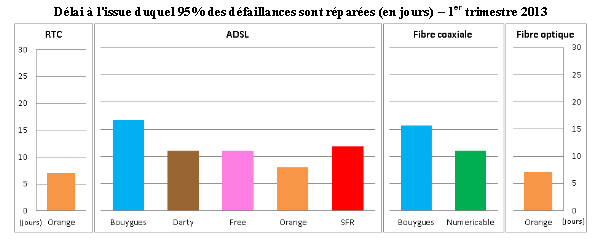 L’ARCEP a publié aujourd’hui, les indicateurs de qualité de service fixe pour le 1er trimestre 2013. Cette étude mesure les délais de raccordement, le taux de panne et le temps moyen pour rétablir les services fixes.