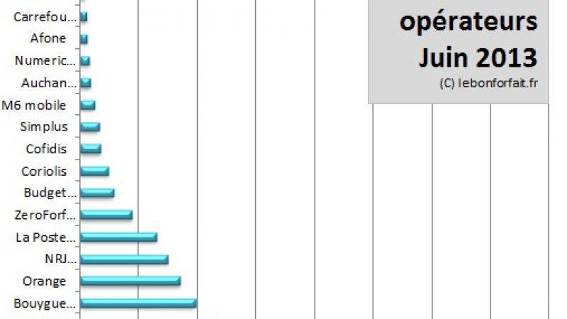 En juin, c’est toujours Virgin qui occupe la 1re place. Il faut dire que l’opérateur n’a pas été avare de nouvelles annonces en juin avec son forfait illimité qui passe à 10€ pour le 2e et le 3e abonnement. Le MVNO a également annoncé un nouveau mode de financement mobile.