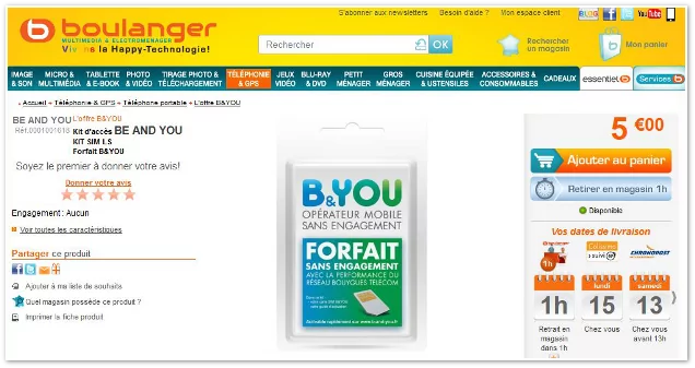 Bouygues Telecom propose des kits d’accès B&You à 5 euros chez Boulanger