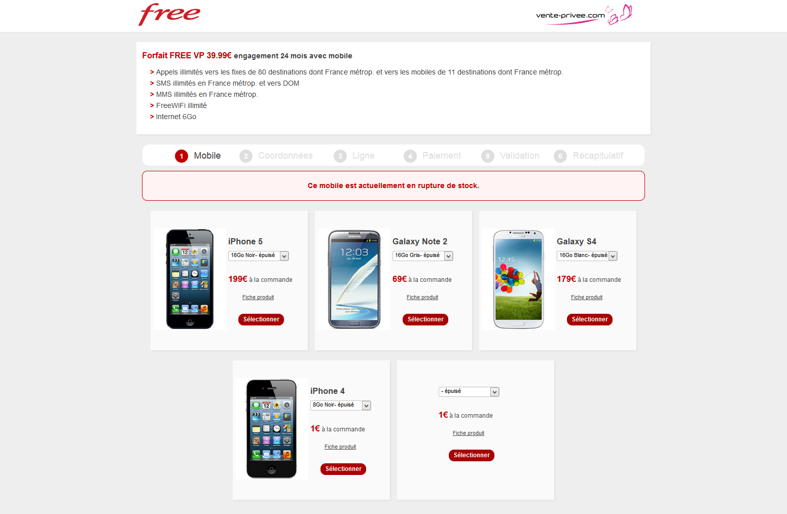 Free sur Vente-privee : Tous les mobiles sont « en rupture de stock »