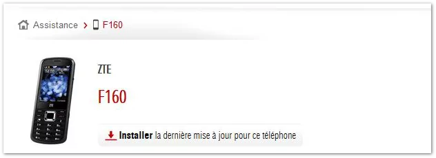 D’autre part, Free recommande vivement, dès réception, de le mettre à jour. Le ZTE F160 comporte de nombreux bugs. Pour bénéficier des derniers correctifs proposés par le constructeur, rendez vous dans l’onglet « Assistance » du site de Free Mobile, puis choisissez le ZTE F160 dans la liste des mobiles. Cliquez ensuite sur « Installer la dernière mise a jour pour ce téléphone ».