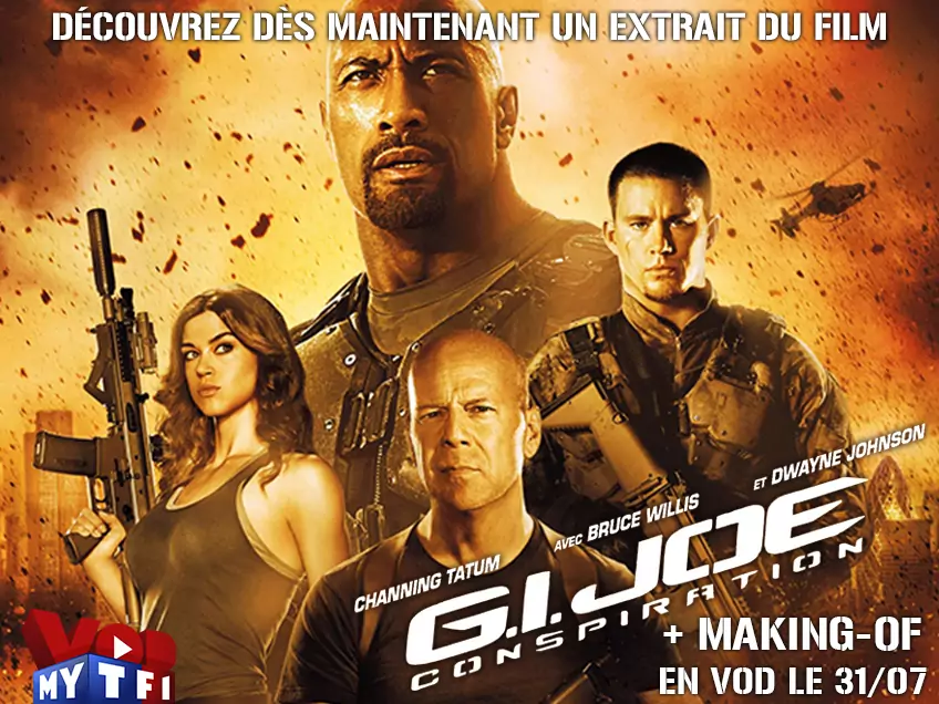 La première concerne GI Joe 2, dont un extrait de 8 min sera offert à partir de demain, 24 juillet. Cette offre accompagnera la sortie VOD de GI Joe 2 le 31 juillet, qui sera associé à une collection « Commando » (Expandables 2, Trilogie Rambo, Universal Soldier, …). GI Joe 2 sera proposé en Edition Collector avec un Making of de 9 min