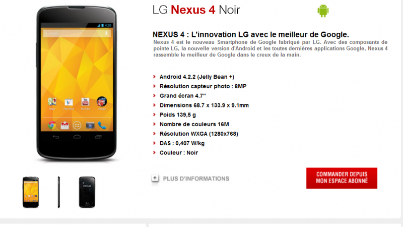 Après avoir été indisponible, la semaine dernière, le LG Nexus 4 n’est, pour le moment, plus proposé à la vente sur le site Free Mobile. Le terminal n’était apparu sur la boutique en ligne que le 12 juillet dernier. Il était proposé au tarif de 344 €.