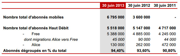 Concernant le mobile, Free comptait près de 6,8 millions d’abonnés au 30 juin ( + 720 000 sur le 2ème trimestre), soit une part de marché de 10,3%. Le chiffre d’affaires des activités mobiles progresse de 88% par rapport au premier semestre 2012, pour dépasser la barre des 600 millions d’euros.