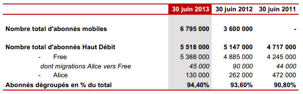Concernant le mobile, Free comptait près de 6,8 millions d’abonnés au 30 juin ( + 720 000 sur le 2ème trimestre), soit une part de marché de 10,3%. Le chiffre d’affaires des activités mobiles progresse de 88% par rapport au premier semestre 2012, pour dépasser la barre des 600 millions d’euros.