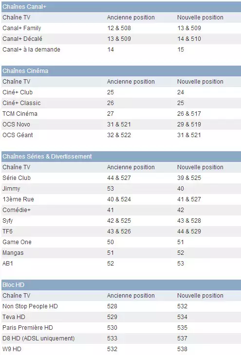 Nouvelle numérotation Canalsat à partir du mardi 10 septembre :