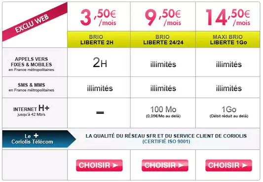 Après avoir lancé de nouvelles offres fin août, Coriolis propose encore de nouvelles offres, cette fois-ci sur la gamme sans engagement. Trois offres sont ainsi proposées sur les 3 gammes de prix (- de 5 €, – de 10 € et -de 20€).