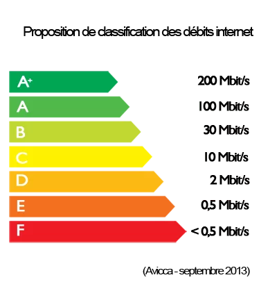 L’AVICCA estime donc que des dispositions réglementaires "doivent être prises prochainement "pour éclairer le consommateur sur ses choix". L’AVICCA propose de créer un dispositif de "grandes classes de débits", avec une signalétique simple lisible et bien connues des consommateurs :