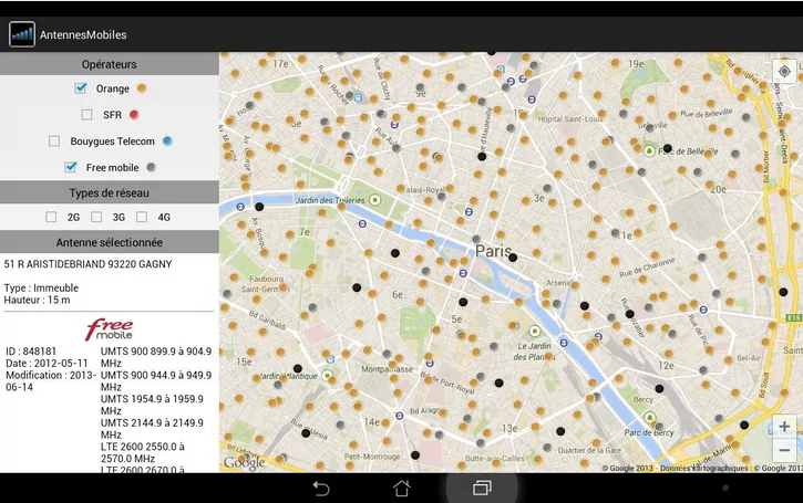 L’application qui, comme pour le site, se base sur les données de cartoradio.fr, vous permet de suivre et de localiser tous les sites d’antennes mobiles déclarées à l’Agence Nationale des Fréquences (ANFR). Vous pouvez affiner vos recherches par opérateur ou par type de technologie déployée : 2G, 3G ou 4G