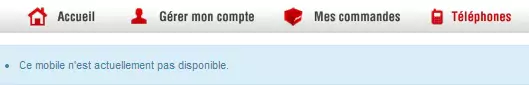 Alors que les autres téléphones sont tous disponibles à la commande ce n’est pas le cas pour la moitié des terminaux de la marque Apple. S’ils ne sont pas marqués comme en rupture de stock, la commande depuis un espace abonné abouti à un message d’erreur pour certaines commandes :