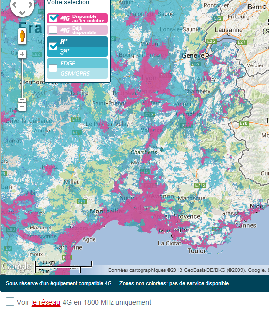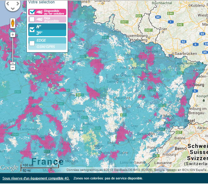 Ci dessous, la couverture de Bouygues au 1er octobre dans le Nord-Est :
