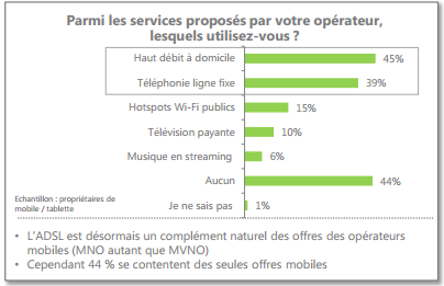 Deloitte note également que 44 % des utilisateurs de tablettes/mobiles n’éprouvent aucun intérêt pour les services fixes.