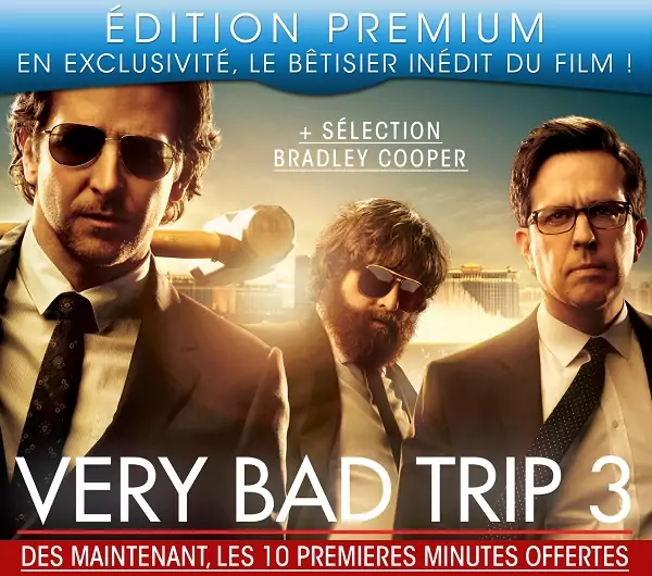 Dès aujourd’hui et en avant-première de sa sortie DVD/VOD, sur MyTF1Vod, la plateforme vidéo propose une édition premium de Very Bad Trip 3 en incluant le bêtisier du Film. Vous pourrez également découvrir gratuitement les 8 premières minutes de ce troisième opus.