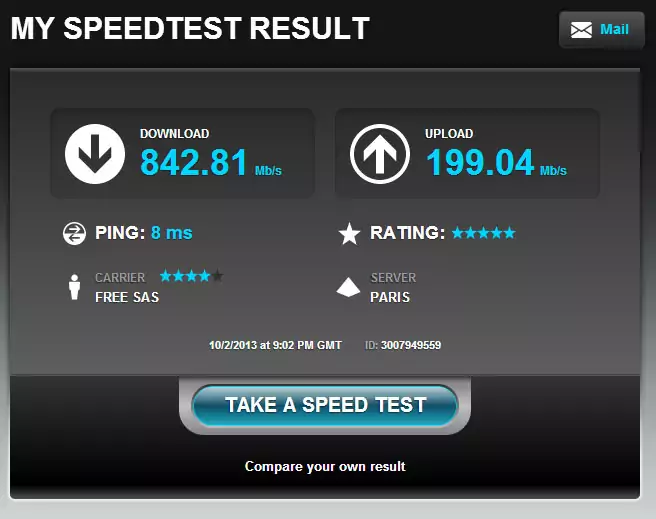 Depuis la publication de quelques tests de débits hier, d’autres Freenautes, abonnés fibre chez Free, nous ont transmis les leurs. Et ces tests montrent des débits proches de 1 Gbit/s, même si pour atteindre ce débit, il faut utiliser un autre routeur que celui de la Freebox Révolution (mode bridge).