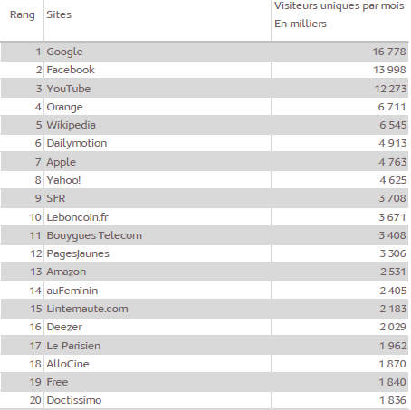 Avec 1,840 millions de visiteurs unique, le site de Free se classe 19 ème site le plus consulté sur un mobile, au mois d’août.