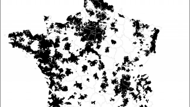 Ci dessous la carte des zones de déploiements prioritaires (zones laissées en blanc).