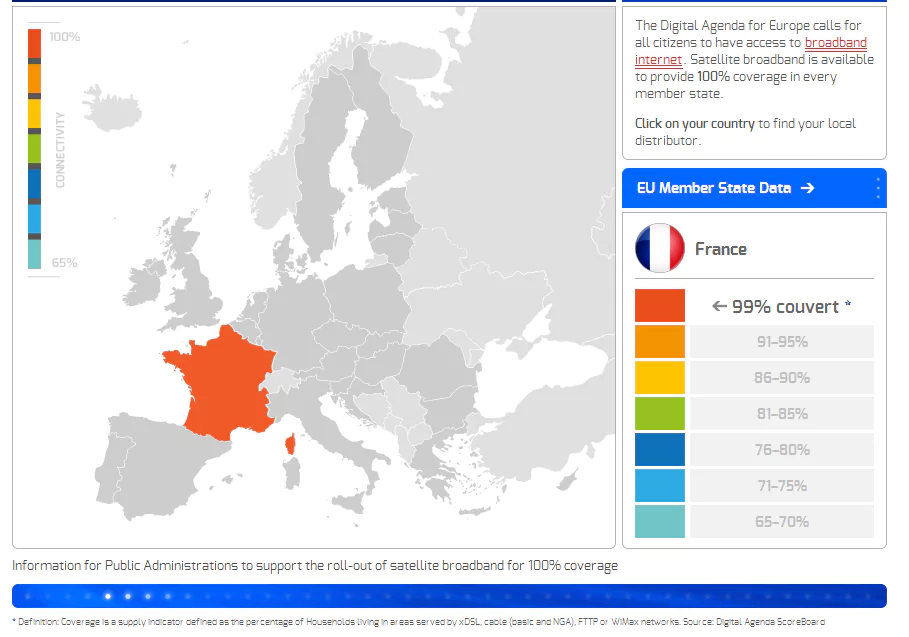 Hier la Commission Européenne a annoncé que "chaque Européen a désormais réellement accès au Haut Débit", notamment grâce au déploiement du satellite dans les zones où les réseaux fixes et mobiles ne sont pas performants.