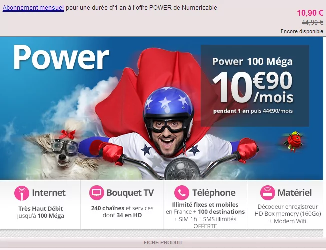 Cette offre quadruple play, disponible depuis ce matin, est valable jusqu’au mardi 29 octobre au tarif de 10,90 € /mois pendant un an, avant de remonter au tarif de 44,90 € /mois.