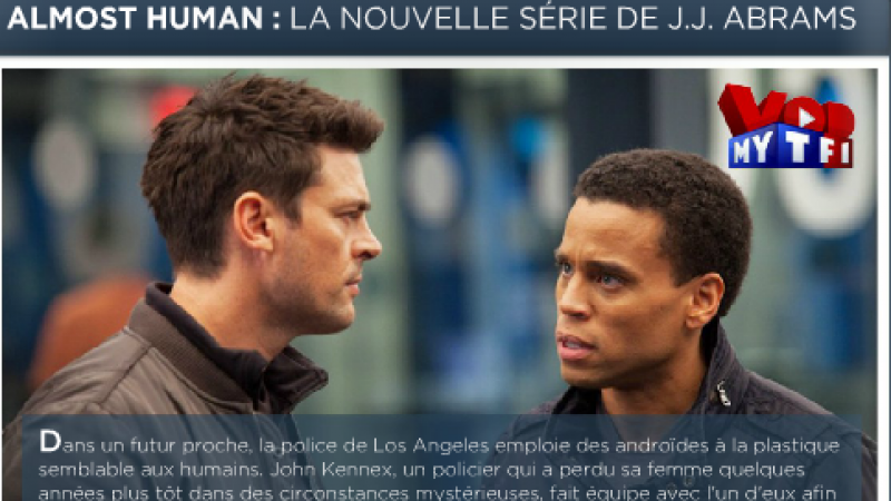 Almost Human, produite par JJ Abrams ( LOST, Alias, Fringe, Person Of Interest), sortira sur la Fox aux États-Unis les 17 et 18 novembre prochain et sera à découvrir sur la plateforme My TF1 Vod de la Freebox dès le lendemain.